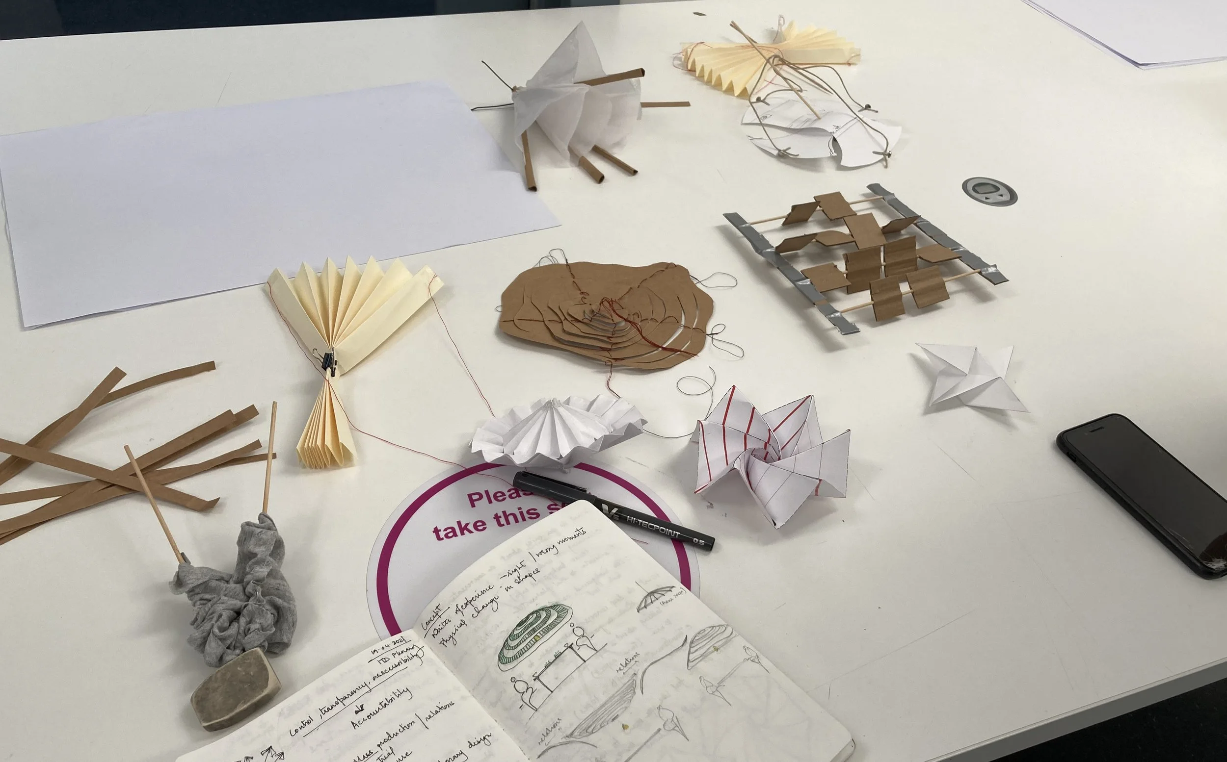 The Conversation Capture is made of four segments of origami. The folds are made in a specific way that enable the segments to grow when they open.