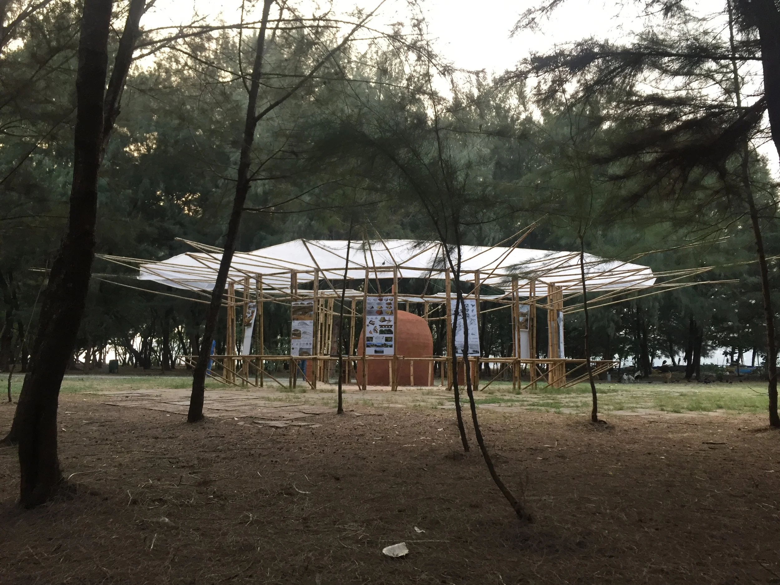 Various lenses determined and enabled the concept and design of the Serendipity pavilion. These include the form and distinct characteristics of the site, material and structural possibilities of bamboo, the rich presence of the Goan culture and lastly, the setting of the Serendipity Arts Festival, during and amidst which the pavilion resided.