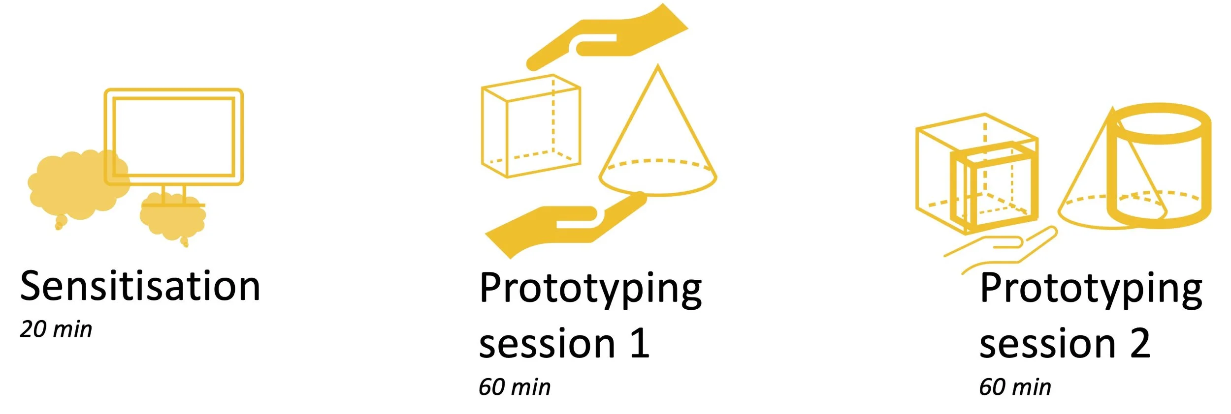 The context of the design project was defined with children during the sensitisation by recollecting experiences of use and challenges in the given space, followed by brainstorming initial ideas for re-design. Once established, the design problem was presented on the screen throughout the first prototyping session with children.